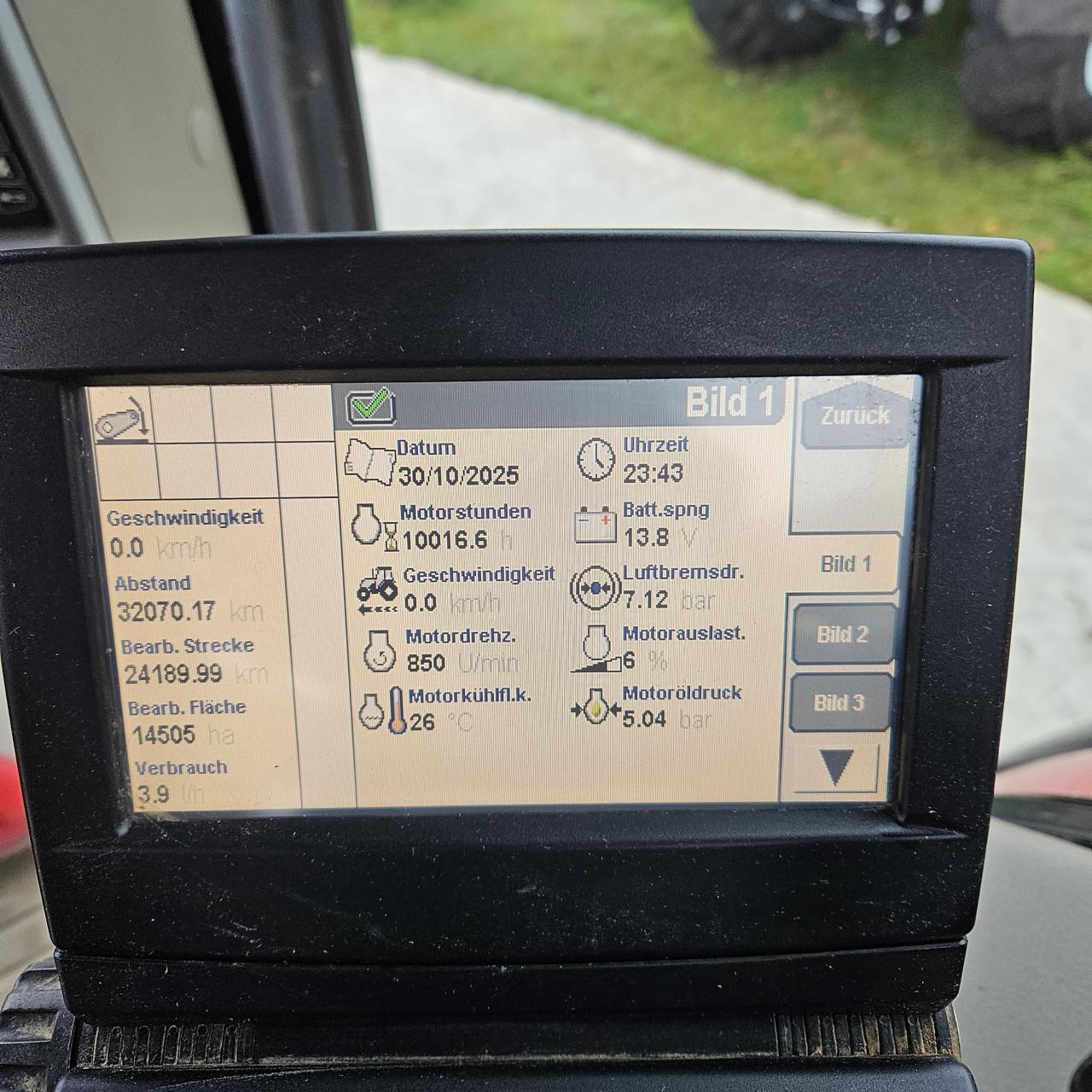 Ausstattung: höhenverstellbare Anhängevorrichtung, Kugelkopfkupplung (K80), Dreipunkt / Heckhubwerkanhängung, Dreipunkt-Außenbedienelement, Elektronische Hubwerksregelung (EHR), Heckzapfwelle-Außenbedienung, Hydrauliksteuergeräte-Außenbedienung, Lastabhängiger Zusatz-Hydraulikkreis (Power Beyond, Load Sensing), Ölrücklaufanschluss (drucklos), Allrad, Hydraulische Lenkung, Stufenloses Getriebe, Gefederte Vorderachse, Frontkraftheber (ohne Oberlenker), Frontkraftheber-Außenbedienung, Frontzapfwelle, Kabinenfederung (mechanisch), Rundumleuchte, Arbeitsscheinwerfer LED Ausführung, Klimaautomatik, Druckluftbremse, Druckluftanlage (2-Kreis), Kabine, Zugmaul - automatisch, Diesel, Bordcomputer / Monitor, Radio, Luftgefederter Sitz, Steuergerät - Doppelt wirkend (4x), Einhebelsteuergerät (elektronisch), Wendeschaltung, Abgasnachbehandlung / AdBlue, Arbeitsscheinwerfer 4x vorn, Arbeitsscheinwerfer 6x hinten, 540/540E/1000/1000E (1440) U/min, Oberlenker hydraulisch (hinten)